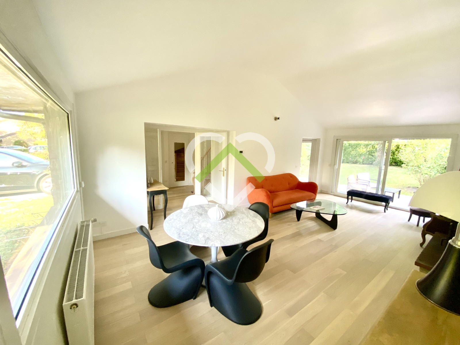 Beau jardin arboré orienté Sud, grand garage pouvant être transformé en suite parentale, 3/4 places de parking.