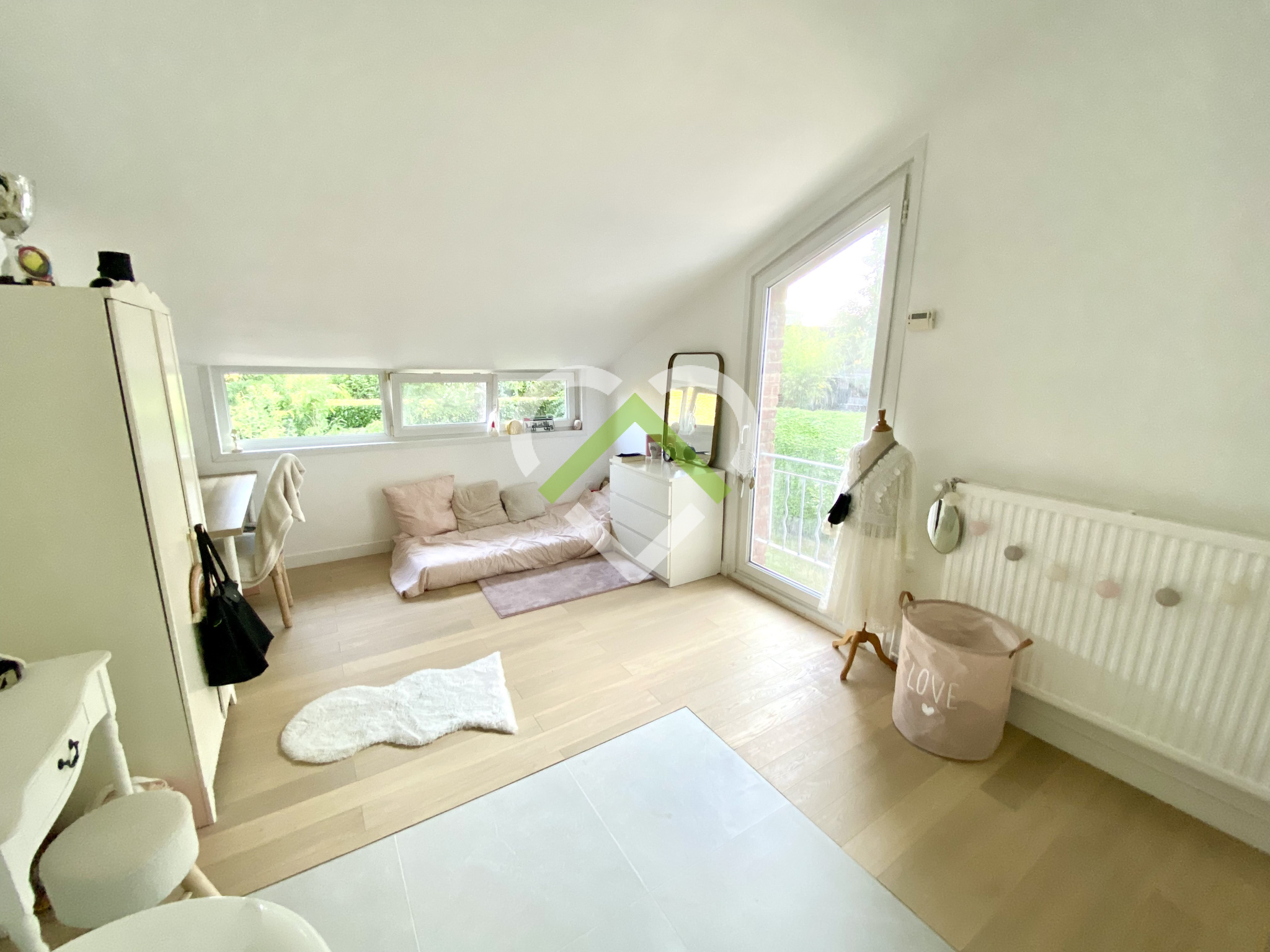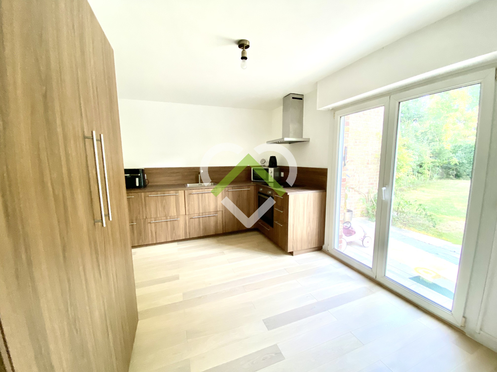 Sur le secteur prisé de Brigode, belle maison semi-individuelle par le garage se composant au rez-de-chaussée d'un hall d'entrée avec vestiaires, espace de vie baigné de lumière de 45m².