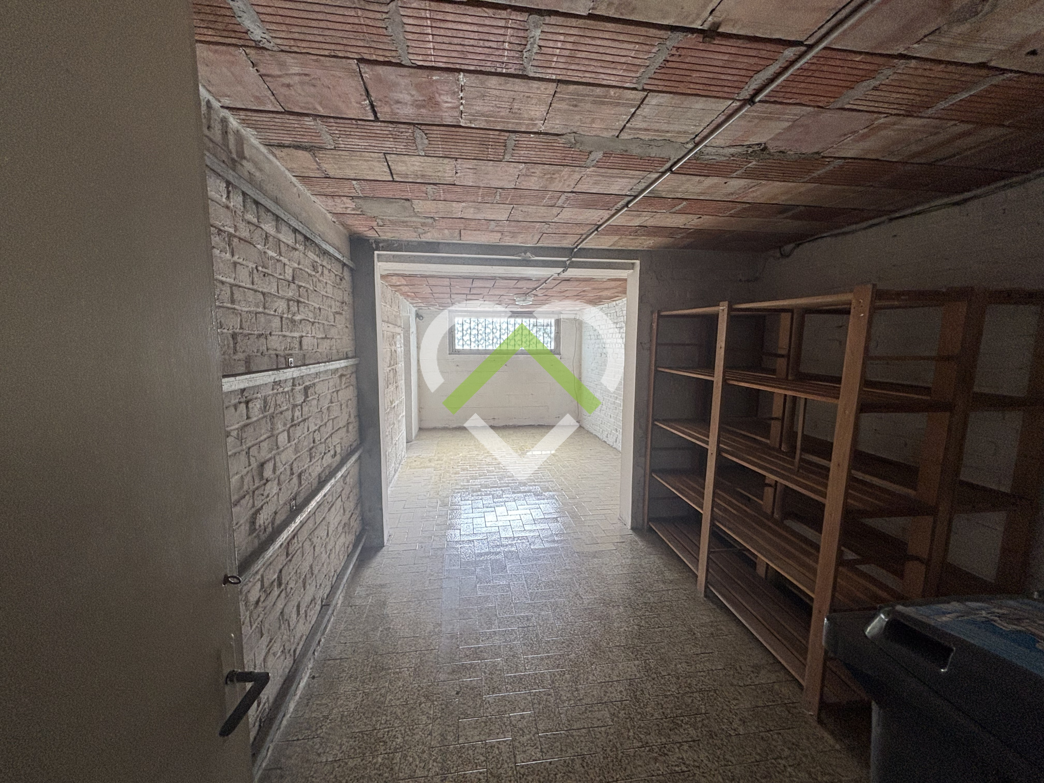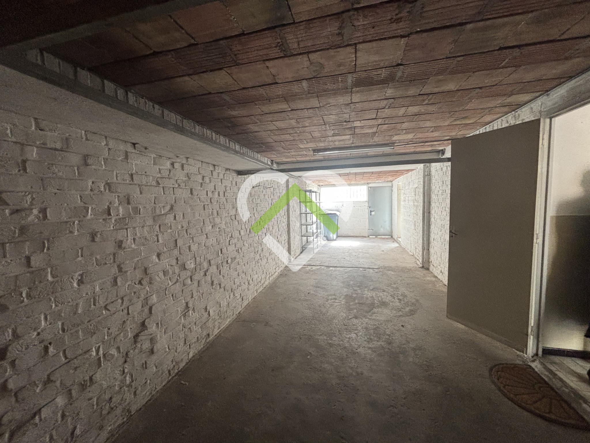 Elle se compose d'un hall d'entrée, garage de 31 m², pièce de stockage attenante de 22 m² (possibilité chambre ou bureau).