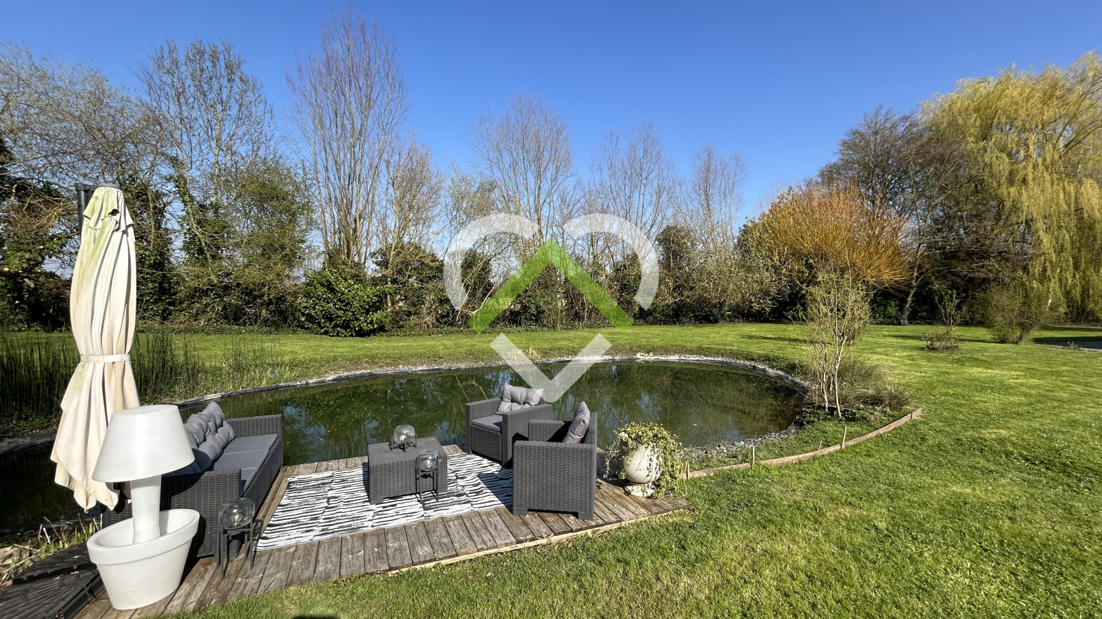 Cadastrée sur 8420 m², elle offre un jardin paysagé et un terrain permettant l'accueil de chevaux.