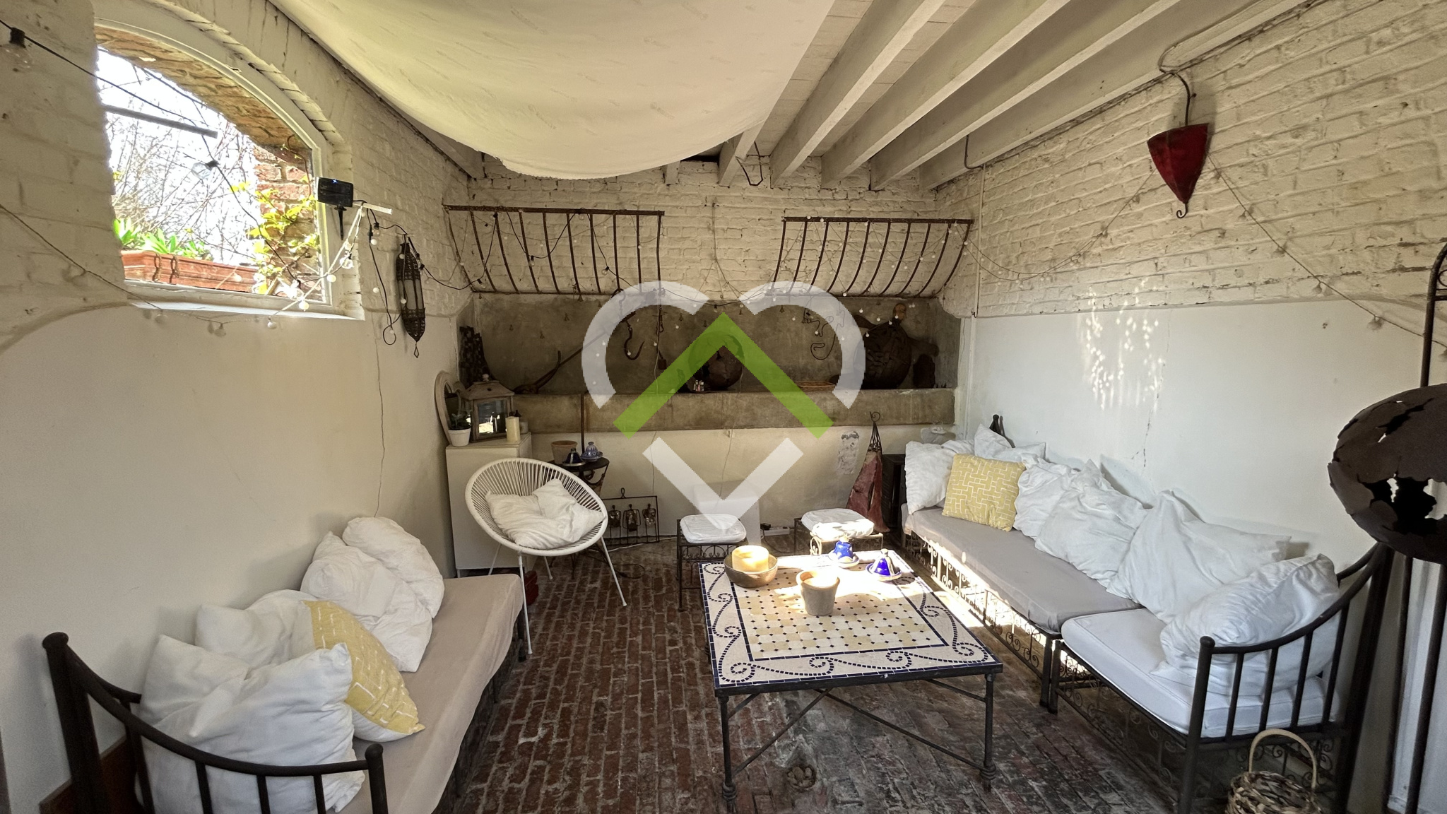 La cour intérieure et intimiste de 113 m² au charme fou donne accès à des dépendances (Lingerie - chaufferie, salon couvert d'été, stockage...)
