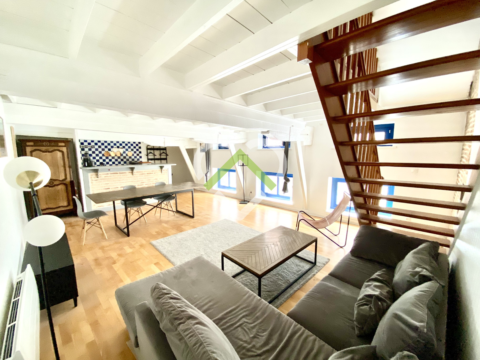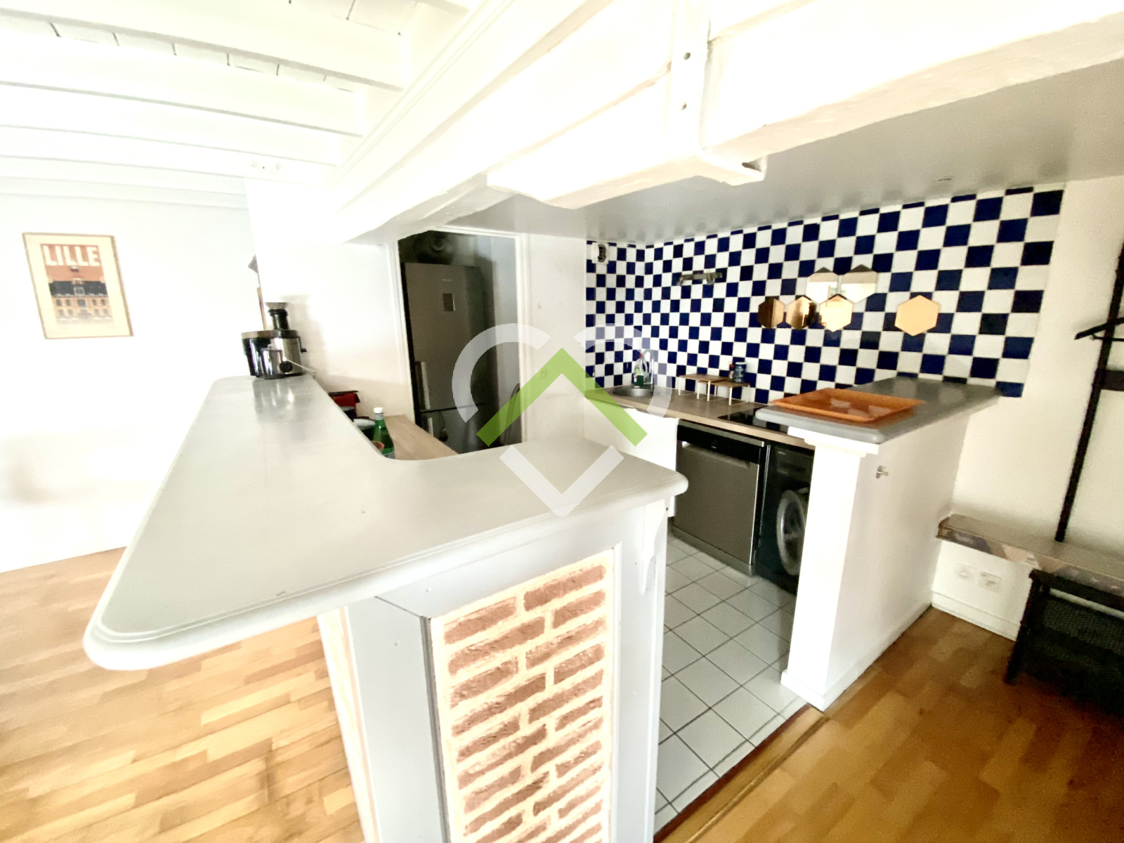 Dès l’entrée, vous serez séduits par son espace de vie lumineux et ouvert donnant sur une cour intérieure, sans aucun vis-à-vis. Les parquets, les poutres apparentes et les murs en briques lui confèrent tout le caractère et l’authenticité des plus beaux appartements du Vieux-Lille.