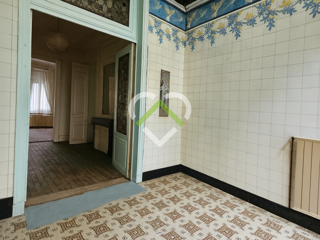 Au RDC : belle entrée, pièce à vivre parquetée avec cheminée + salle à manger avec vitraux et carreaux de ciment, le tout pour près de 50 m². Cuisine indépendante et arrière cuisine, salle de bains et WC indépendants. Au 1er étage : 2 chambres de 15 m² avec point d'eau chacune, cuisine de 15 m² (possibilité salle de bains), salle d'eau + WC sur palier intermédiaire. Au 2ème étage : 1 chambre de 15 m² avec point d'eau, grande chambre de 25 m² avec sa salle de douches. Au 3ème étage : 1 chambre de 11 m², 2 chambres avec entrée commune (possibilité cloison), les deux pour une surface de 24 m². Au dernier : un grenier aménageable et accessible depuis le palier du 3ème étage.