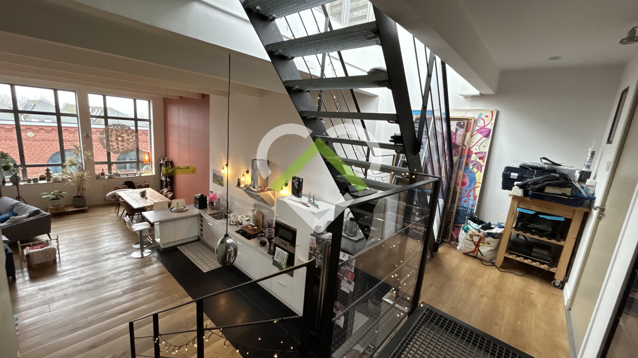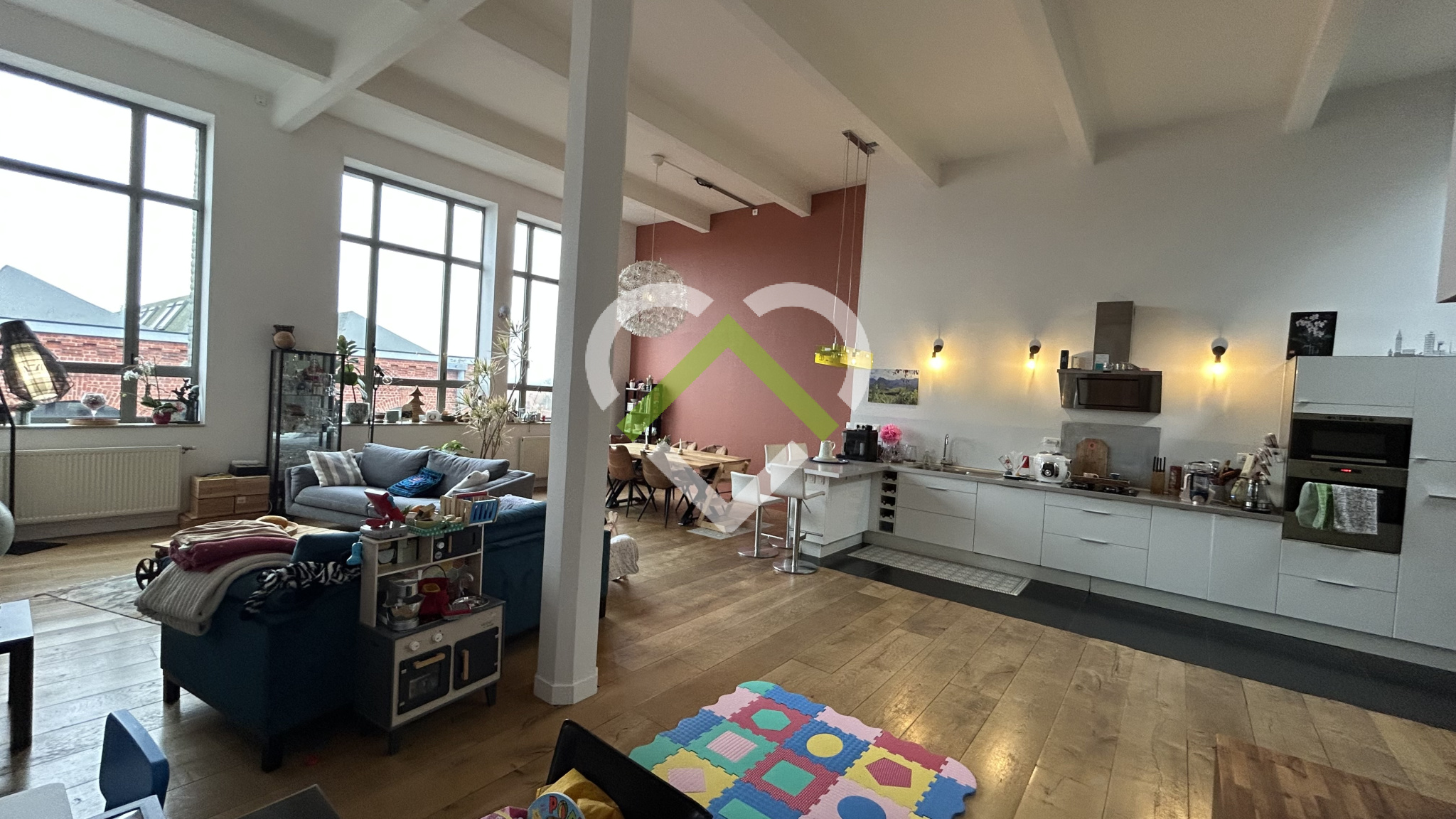 Avenue Immobilier Wasquehal vous propose ce loft en dernier étage disponible en juillet de 142,50 m² habitables - Il offre un espace de vie de 70 m² baigné de lumière sur plancher bois, une cuisine entièrement équipée, 3 chambres dont un domaine parental avec salle de bains attenante, une autre salle de bains avec douche à côté des deux autres chambres, une buanderie, une terrasse de 100 m² et une place de parking - La vue dégagée de la pièce de vie et de la terrasse ainsi que les volumes de ce bien vous séduiront - Un véritable coup de coeur bien placé sur la ville de Roubaix à proximité des commodités dans une bâtisse chargée d'histoire !