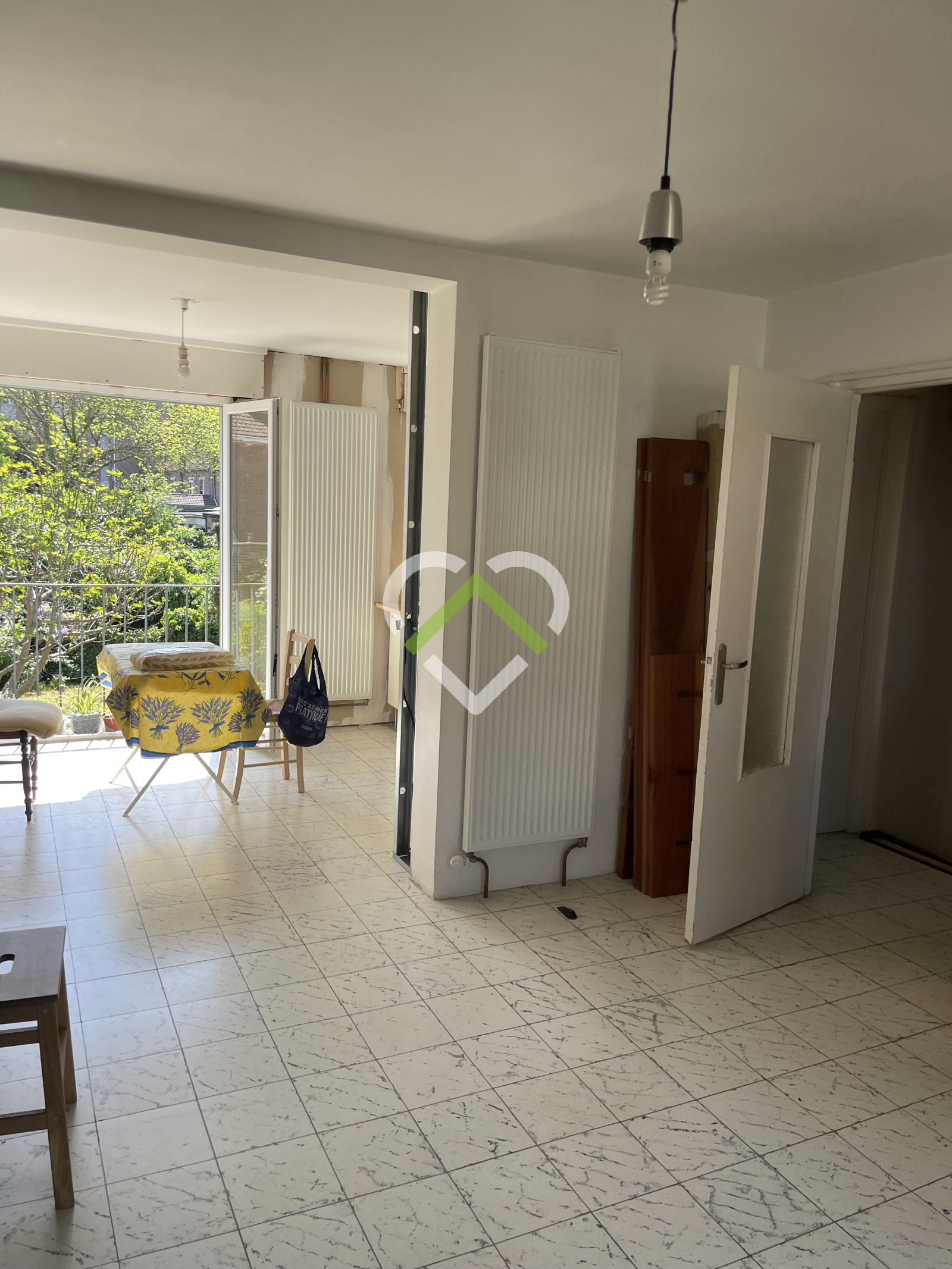 ouvert sur la cuisine, avec une baie sur une terrasse potentielle