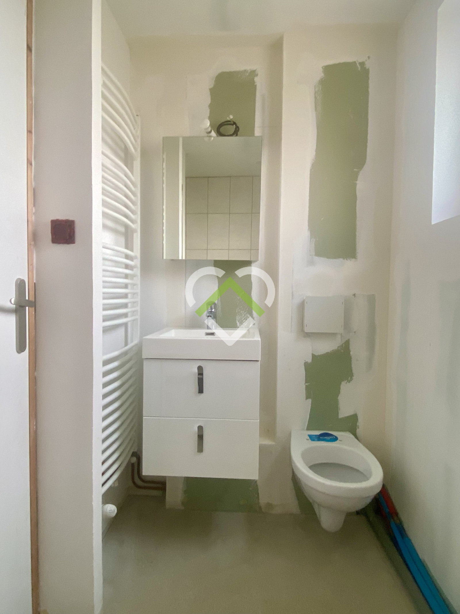 wc suspendu neuf, avec un dégagement pouvant accueillir un lave main ( arrivées eau froide et chaude + évacuation existants)